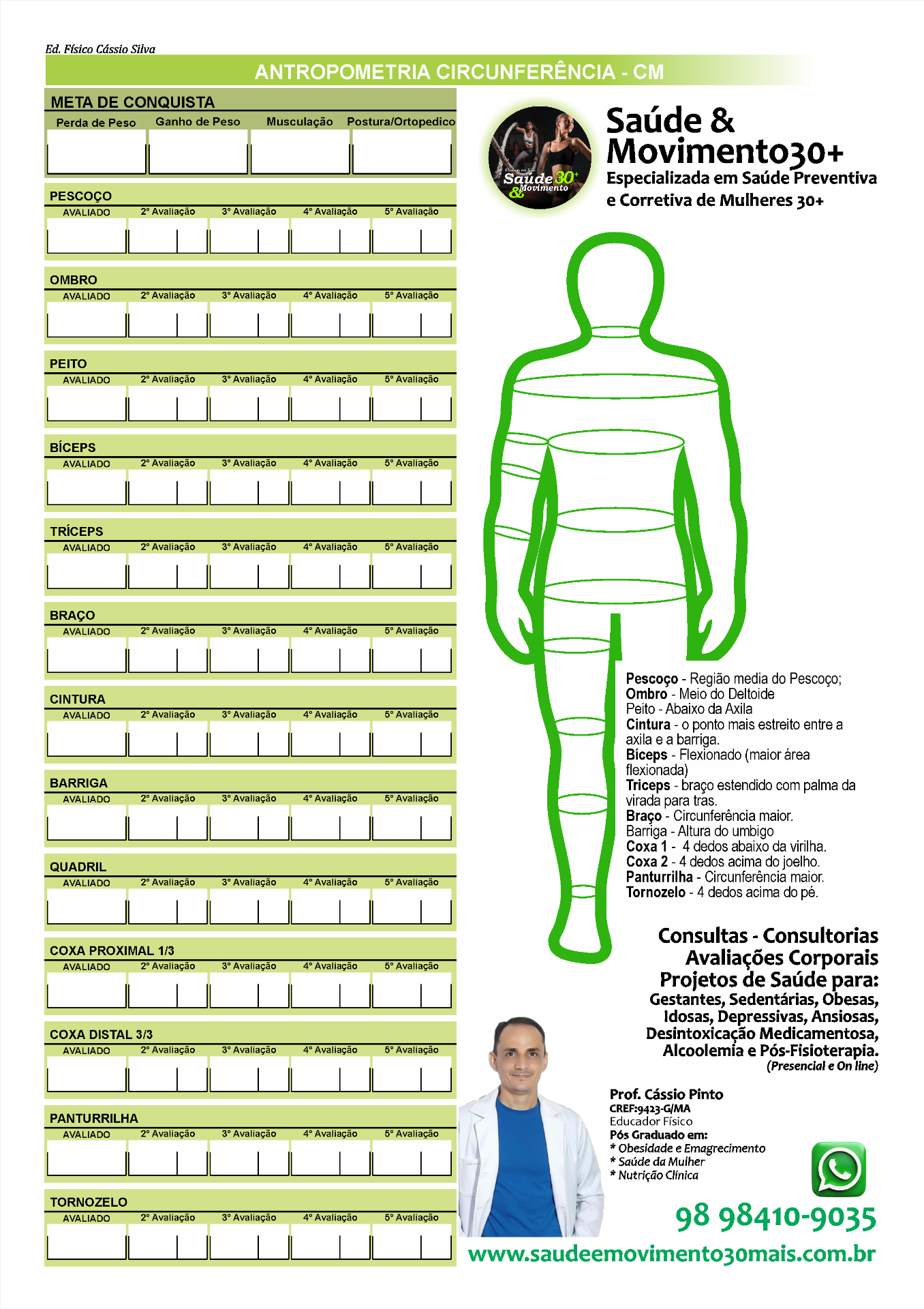 Olha só que bacana! Aqui na Plataforma você pode pegar as suas medidas mês a mês e utilizá-las nas calculadoras de treino, são várias calculadoras importantíssimas para você evoluir no seu Projeto de Saúde com segurança e garantia de evolução. Acesse gratuitamente através do link: https://www.saudeemovimento30mais.com.br/5-calculadoras-e-questionarios/
